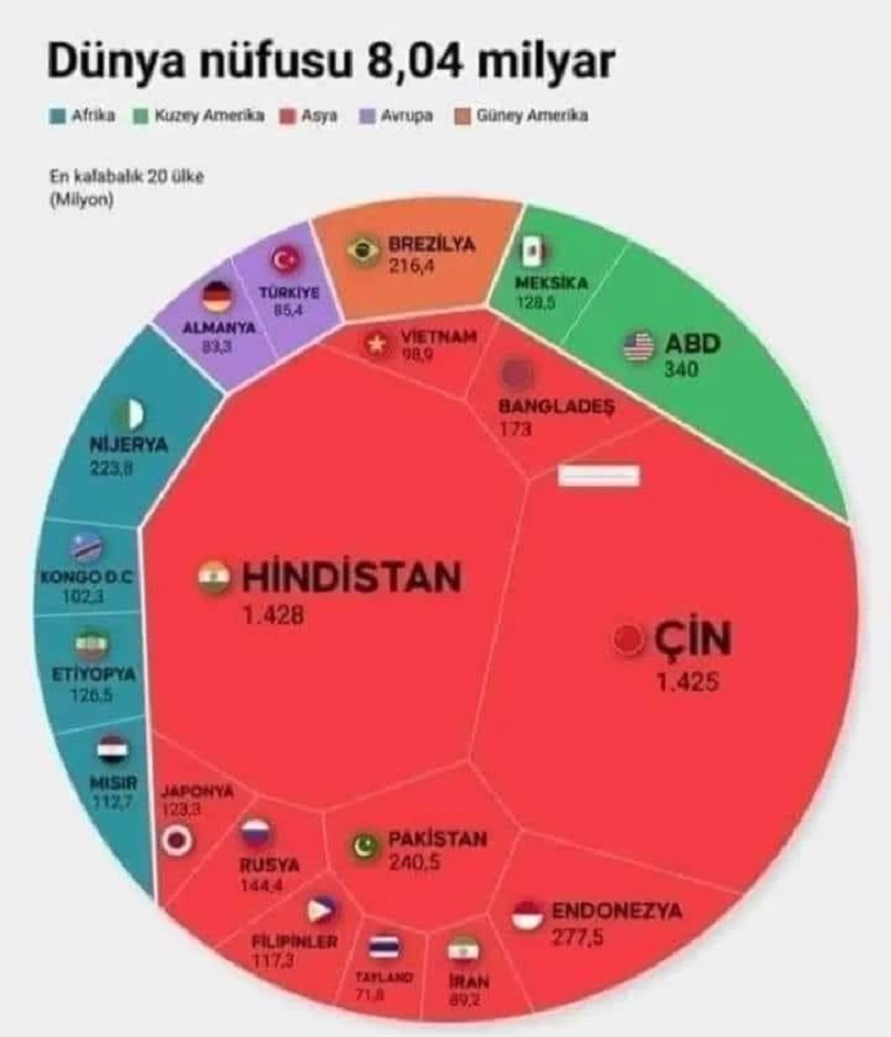 • Asya: Dünya nüfusunun %60’ı Asya kıtasında yaşıyor. Bu oran, Asya’nın en kalabalık kıta olma konumunu pekiştiriyor.
